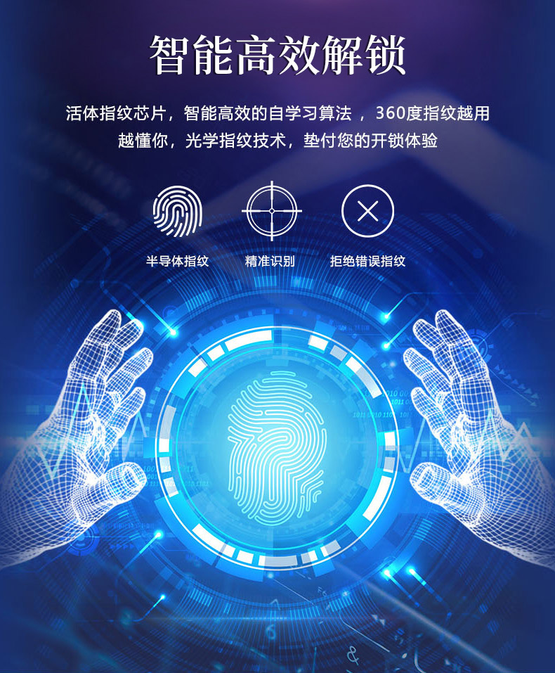 智能指紋鎖:感應(yīng)開鎖更方便,節(jié)省時間,只需輕輕一碰,簡單方便,節(jié)約管理鑰匙的時間