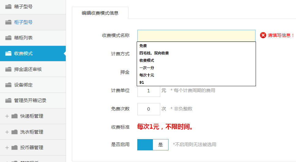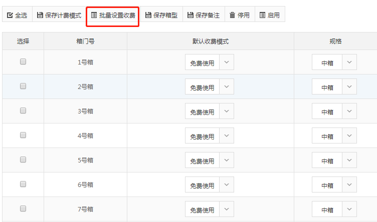 收費模式設(shè)置完成之后進到箱子列表(步驟參考“第三步:應(yīng)用收費模式”),