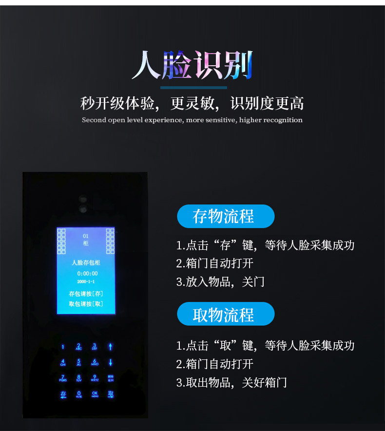 | 產(chǎn)品名稱 | 人臉識(shí)別存包柜指紋智能電子寄存柜 |